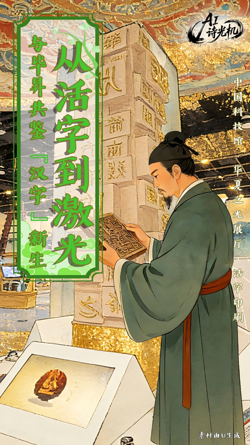 毕昇的“胶泥、铁板”与现代的“数字代码、激光排版”遥相呼应,诉说着一个永恒的信念:以胶泥为骨,窑火为魂;以数字为舟,激光为楫,渡万象知识于无极。