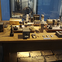 历史实验室展区设计了多个沉浸式场景,比如中世纪炼金术士的工作坊,还有19世纪德国化学家尤斯图斯·冯·李比希的实验室。奥托·哈恩和莉泽·迈特纳当年用铀盐进行铀原子裂变实验的原始设备也在展厅中,他们最初的实验设计目的是获得更重的原子,然而在1938年的一次实验中,却意外获得了更轻的元素钡和氪。这是人类首次人工核裂变实验,它开创了人类利用原子能的新纪元,具有划时代的历史意义。奥托·哈恩因此荣获了1944年诺贝尔化学奖。