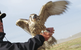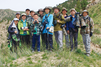 我们运气不错,不出10分钟就见到了棕背雪雀。这时,我们发现700米开外的土丘上有一只猛禽,董老师说依体形看应该是一只猎隼。