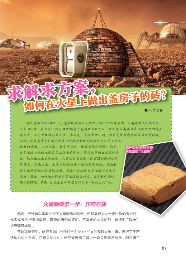求解求方案,如何在火星上做出盖房子的砖?