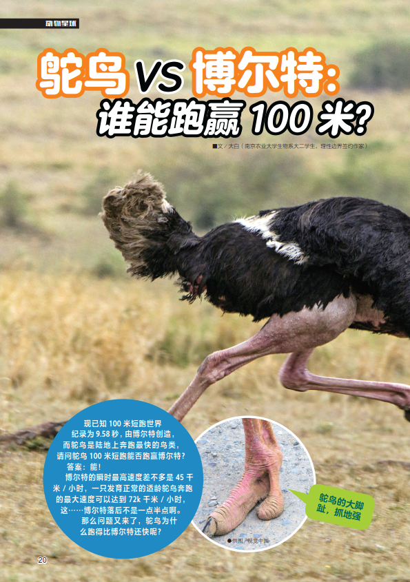 鸵鸟VS博尔特:谁能跑赢100米?