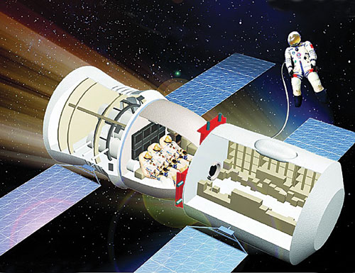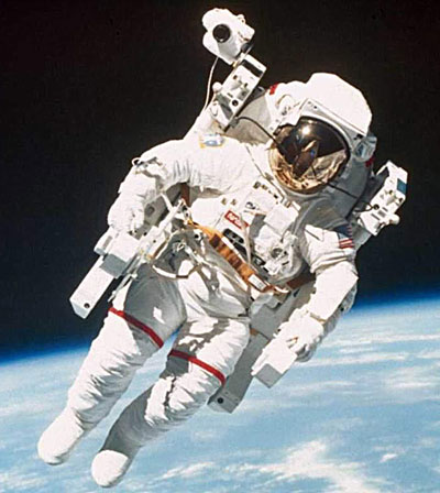 2.航天员出舱后与“母”航天器分离,由于身穿舱外用的航天服,背着便携式环控生保装置,以及太空机动装置,航天员可到离“母”载人航天器100米远处活动。