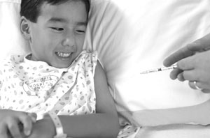 在詹纳的家乡,有一对夫妇都是牧场的工人,他们有一个年仅8岁的可爱男孩,名叫菲里普斯。当得知詹纳先生要在人身上做实验时,这对夫妇主动要求,甘愿使自己的孩子冒着患上“天花”的危险,让詹纳进行实验。同时,詹纳先生又找到一位患有牛疱疹的挤奶女工,说明要做实验的理由,这位女工欣然答应了。詹纳先生首先从女工手指的疱疹中提取出一些液体,然后用手术刀划破菲里普斯的手臂,将取到的疱疹液滴在伤口上面。48天后,詹纳又将从天花病人身上的脓疱中提取出的液体,同样滴在了菲里普斯再一次被手术刀划破的手臂上。结果奇迹发生了,这个男孩既没有出现疱疹,也没有出现“天花”的任何临床表现。