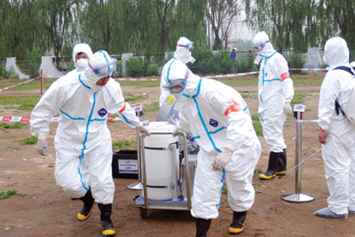 从2008年6月29日开始,3个月内,大约三千一百余名安检人员在北京市五条地铁线的93个车站,对乘客所携带物品实施安检。从7月1日起,188人组成的40支反恐小分队24小时待命,一旦发生生物恐怖袭击,保证10分钟内出动,前往现场处置。