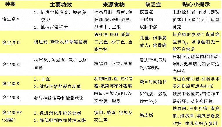 多数维生素在体内不能合成,必须由食物供给。了解清楚哪些食物能够补充天然维生素,就可以做到“有的放矢”,通过科学饮食达到保健的目的。