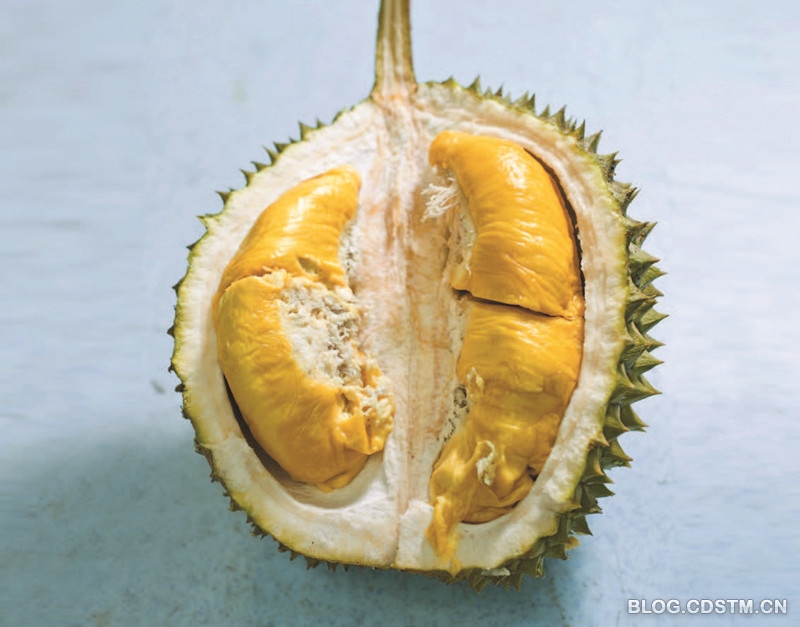据说,为了让榴莲保持最佳的生长环境,果农们一般都把它们种在倾斜的地面上,这样水分会顺着斜坡而下,不会积聚在榴莲树根部,没有积水长出来的榴莲果实饱满,而且肉身干爽清甜——所以说,凡事都得先看出身。总体来说,挑榴莲果实时,先闻其味,香味越浓代表越成熟,不成熟的则会有青草味,闻起来够香就代表好,如夹杂其他怪味,说明果肉可能有问题。要选榴莲中的极品,最简单就是看榴莲柄,柄越小、表面越粗糙、断面越新鲜,就代表这个榴莲是树上熟的,味道就越甘醇。