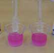 2. 取两份少量的上面配置的好的碱性溶液于烧杯中,分别滴入酚酞试剂1、酚酞试剂2;烧杯中两份溶液分别变成粉红色。