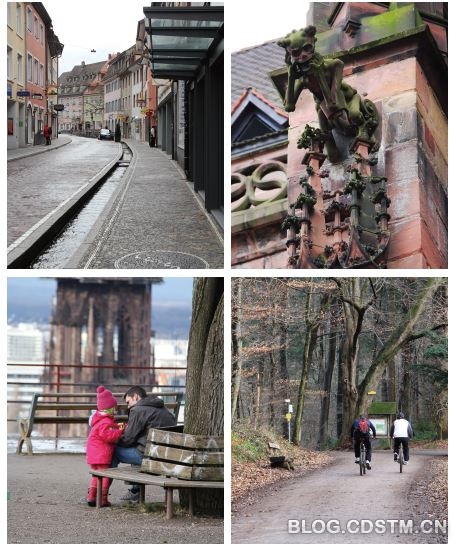 弗莱堡最让人过目不忘的,应该是遍布城市街巷的水渠了,这是来自黑森林的活泉水,即便是冬季也依旧流水潺潺,仿佛是弗莱堡这幅画作的最美勾勒。关于这些溪流的最早记载出现在公元1238年,最初他们用于清洁卫生、居民用水、喂养牛羊以及城市防火,给小城市民带来很多便利,而今水渠的城市清洁功能早已不再,不过汩汩的水流一方面充当了天然空调的角色,另外也让弗莱堡变得更加灵动。