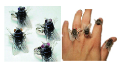 如果看见有人手指上有好几只苍蝇挥之不去,还不轰走,那一定是这枚苍蝇戒指了。这款苍蝇戒指,指环部分是银制,而那只看上去让人厌恶的苍蝇却是塑料做的,仔细看一下,苍蝇的眼睛颜色也有区别,有红、绿、黄、紫多种颜色。什么时候会戴这样的苍蝇戒指?也许是不得已去见不想见的人,戴一枚这样的戒指, 故意让对方感觉难受,除此之外,实在是想不出其他的理由。尽管流行高富帅、白富美,但是丑也是有追求的,带上苍蝇戒指婉转拒绝吧。