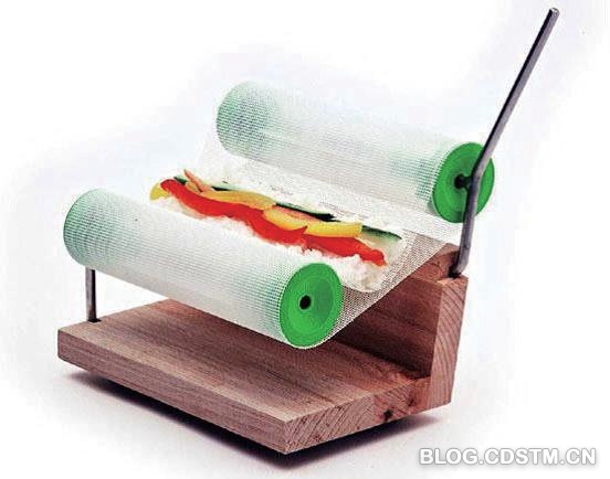 爱吃寿司的你是不是也担心在外面吃到的食材不卫生,自己在家动手DIY,却经常做不出想吃的味道,或是饭团总捏不上, 夹起来就全散开了。快买下这款寿司制作器吧,它能让你的寿司制作变得非常简单:首先放上紫菜,将米饭铺在上面,再放上你爱吃的食材,摇动手杆卷一圈,完美的寿司就做好了,它把饭团捏得很紧实,即使刀工不好也不会切散。