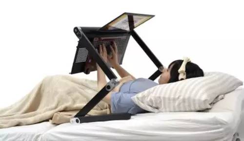 2017-03-09 09:24:00你还在羡慕在家办公的SOHO一族吗?那你就OUT了!现在最时髦的懒人工作方式是床上办公。根据伦敦的一项调查,有35 %的人承认自己或配偶会在床上上网、收发电子邮件。而美国调查显示,年轻上班族中,有80 %的人经常在床上办公。越来越多的“被窝办公者”促使像支架、靠垫、内置电源插座、软性桌面、床头桌、可调式床垫等力图让人们在床上办公时更为舒适的“宅床神器”热销。把工作和休息搅在一起的人,真可谓:恋上你的床,是个工作狂啊!