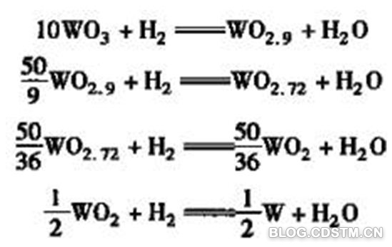 图4.氢还原氧化钨的化学反应方程式