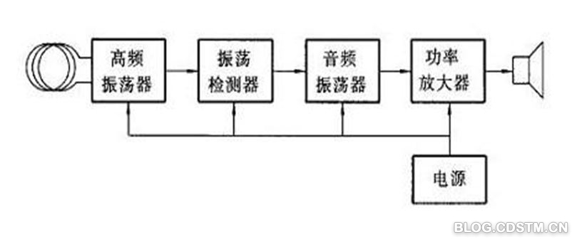 金属探测器一般由高频振荡器、振荡检测器、音频振荡器、功率放大器等部分组成,并配以电源、指示表和声响指示器。在实际操作中,金属探测器利用的是电磁感应原理。首先,它利用有交流电通过线圈产生迅速变化的磁场。然后,使这个磁场的磁力线穿过金属物体并在其表面形成涡电流。接下来,涡电流又会产生二次磁场,反过来影响原来的磁场,产生仪器能够接收和识别的信号。最后,信号经过处理和放大,使指示表的指针偏转并同时驱动声响指示器发出声响信号[4]。