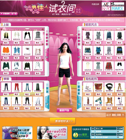 “网上试衣间”类似于曾经很流行的“美女换装游戏”,根据网友自己填写的三围等信息,它可以设计出一个虚拟的“我”,并在试衣间里试穿各种各样的衣服,从而让网友看到“自己”穿上衣服后的直观效果。