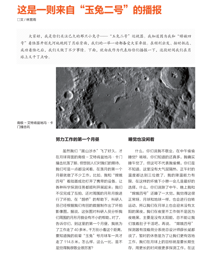 这是一则来自“玉兔二号”的播报
