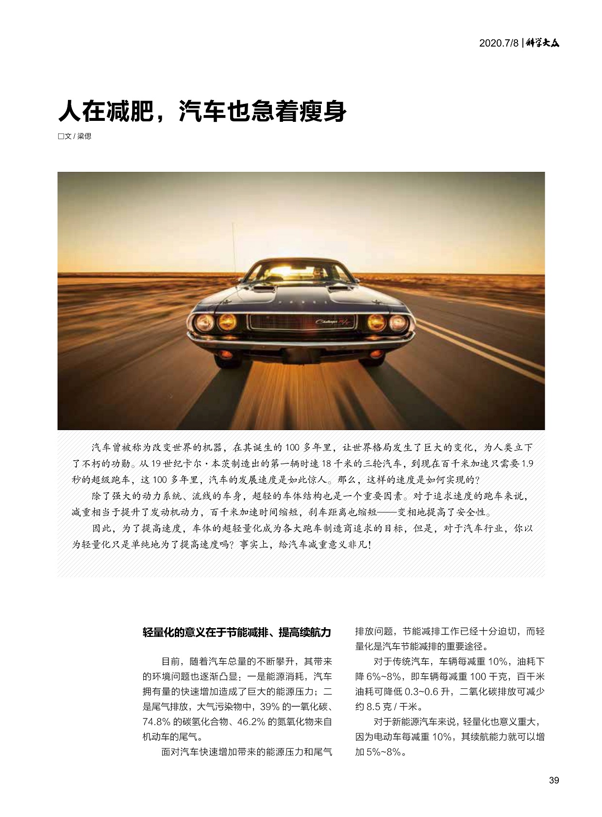 人在减肥,汽车也急着瘦身