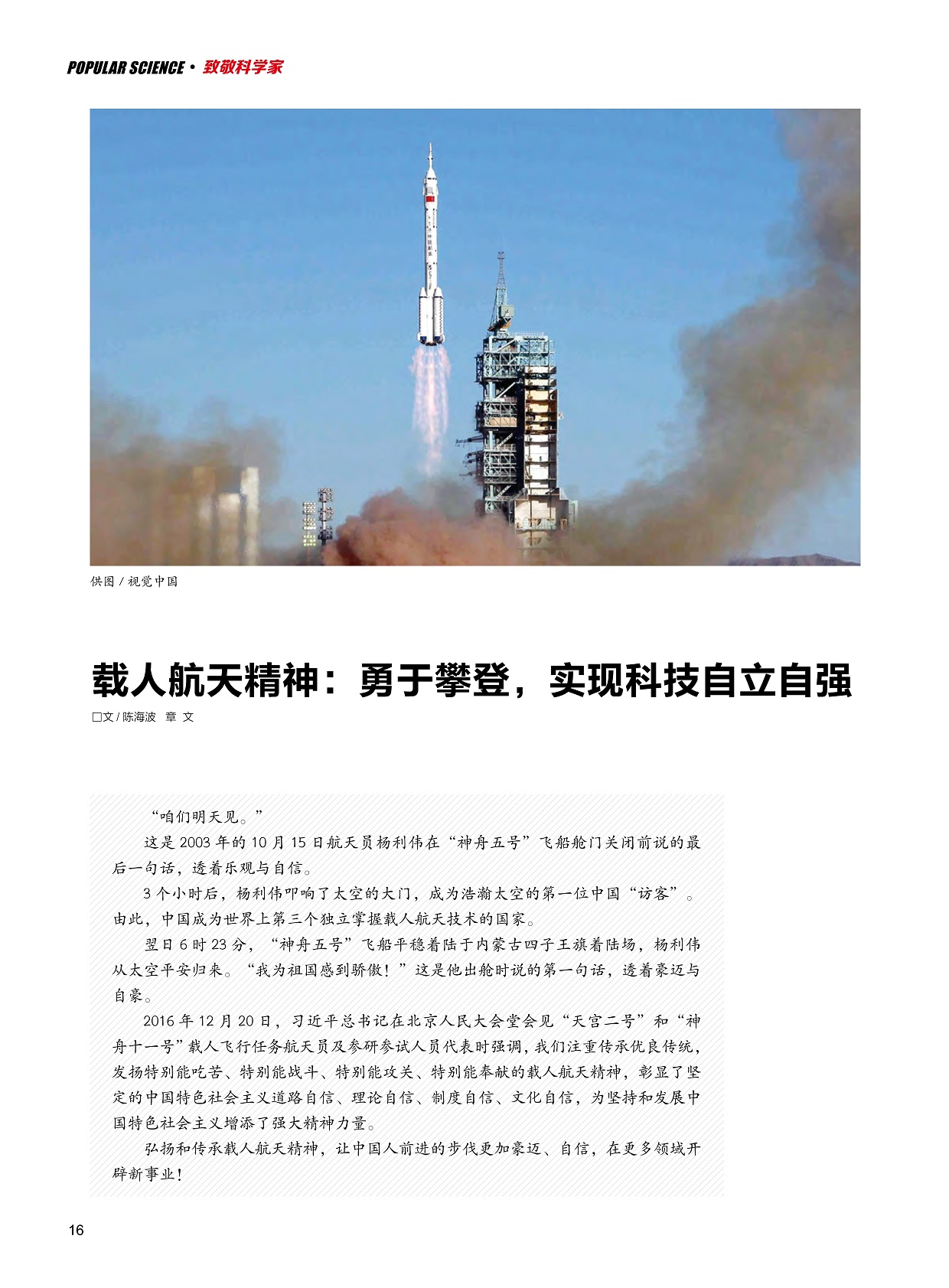 载人航天精神:勇于攀登,实现科技自立自强