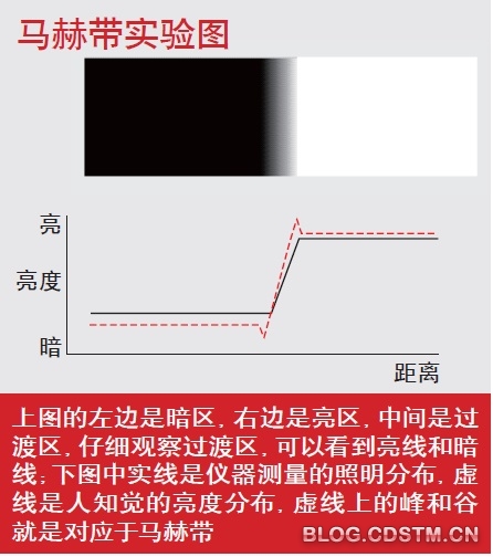 虽然说视知觉对光的亮度变化并不敏感,但对光的分辨率却十分灵敏。例如,视觉神经细胞有能力分辨两个相邻的不同照度区域,且不管两者间的差别是1.2勒克司与1.4勒克司,还是1200勒克司与1400勒克司。读者也许有体会,一张白纸放在暗室里也能感觉到它的明亮,而杜甫能在黑夜里看见远处的渔火也就是这个道理。