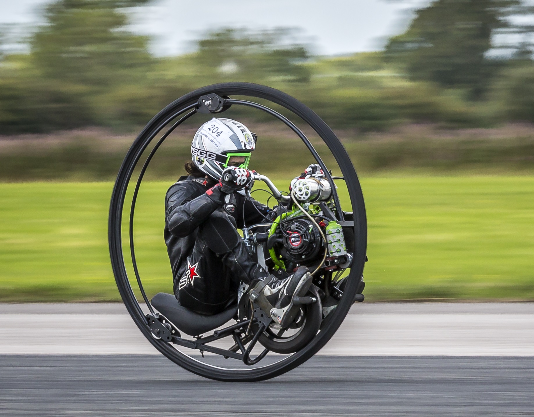斯科特居然对这个速度并不满意,他希望还能更快一些。研究团队利用比金属密度更小、更坚固的碳纤维来制造车轮,并采用了更大功率的发动机。2015年9月,斯科特骑着这辆酷酷的独轮车,以98.46千米每时的速度打破了最快独轮车的吉尼斯世界纪录。