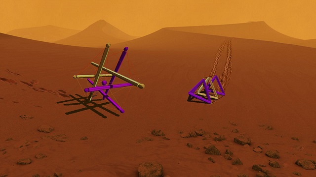 “这是个绝佳的火星着陆器!”阿戈吉诺惊呼。跟传统的火星车不同,这种完全由棍杆和弹力绳组成的机器人无须借助降落伞、气囊、空中吊车,就可以顺利在火星上着陆。不用担心在着陆的那一瞬间遭遇强烈撞击,反正它马上就可以回弹成原状。