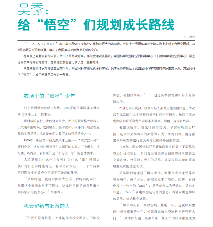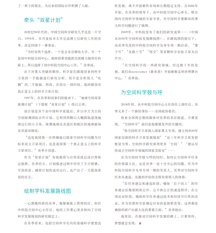吴季亲历并见证了我国空间科学发展的许多重要节点。