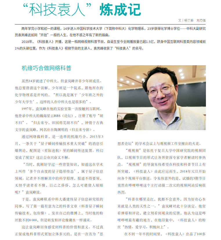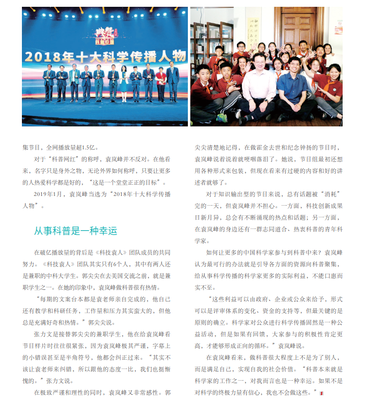 2018年,《科技袁人》开播,这是一档网络视频科普节目,自诞生至今全网播放量已超1.5亿。