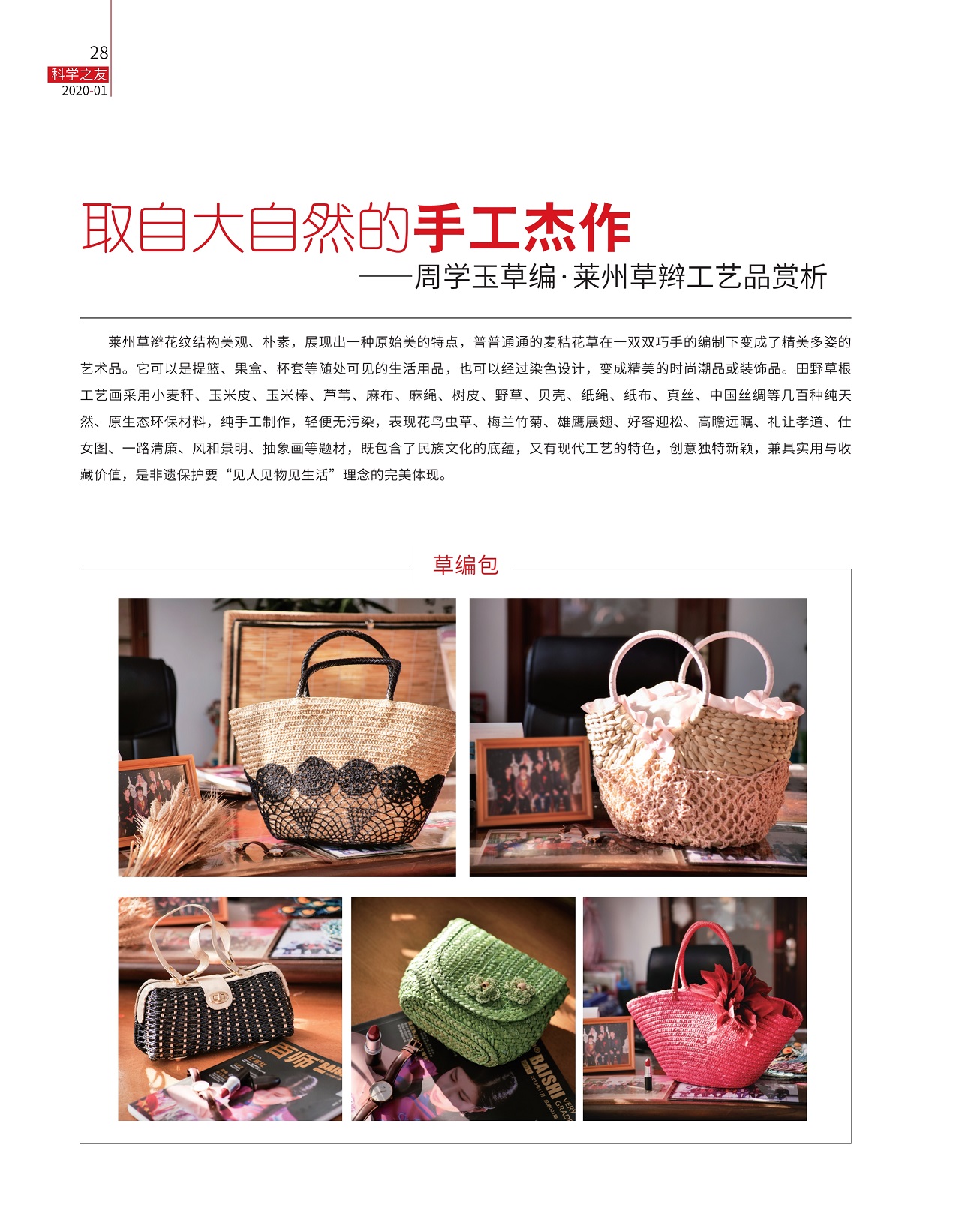 莱州草辫花纹结构美观、朴素,展现出一种原始美的特点,普普通通的麦秸花草在一双双巧手的编制下变成了精美多姿的艺术品。