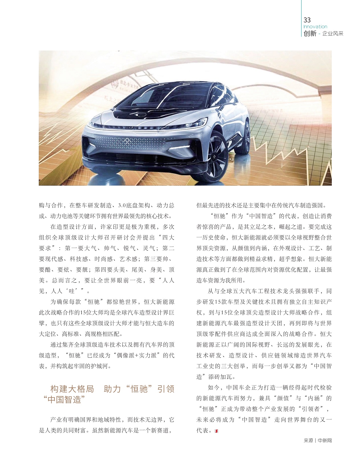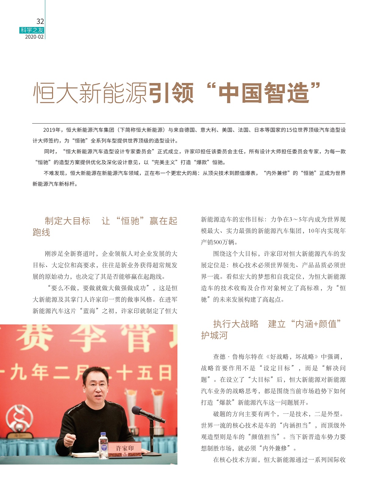 “恒大新能源汽车造型设计专家委员会”正式成立,许家印担任该委员会主任,所有设计大师担任委员会专家,为每一款“恒驰”的造型方案提供优化及深化设计意见,以“完美主义”打造“爆款”恒驰。