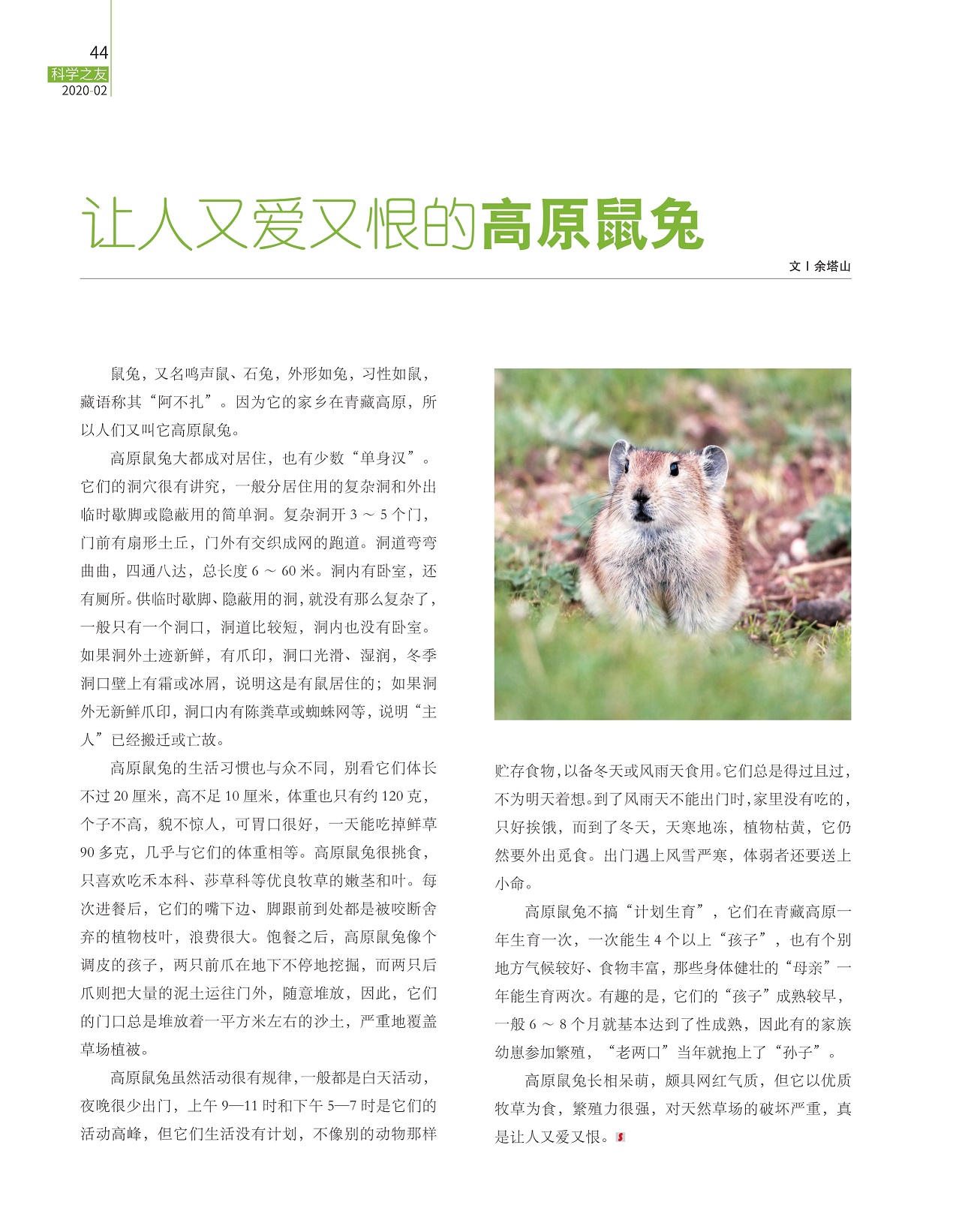 鼠兔,又名鸣声鼠、石兔,外形如兔,习性如鼠,藏语称其“阿不扎”。因为它的家乡在青藏高原,所以人们又叫它高原鼠兔。