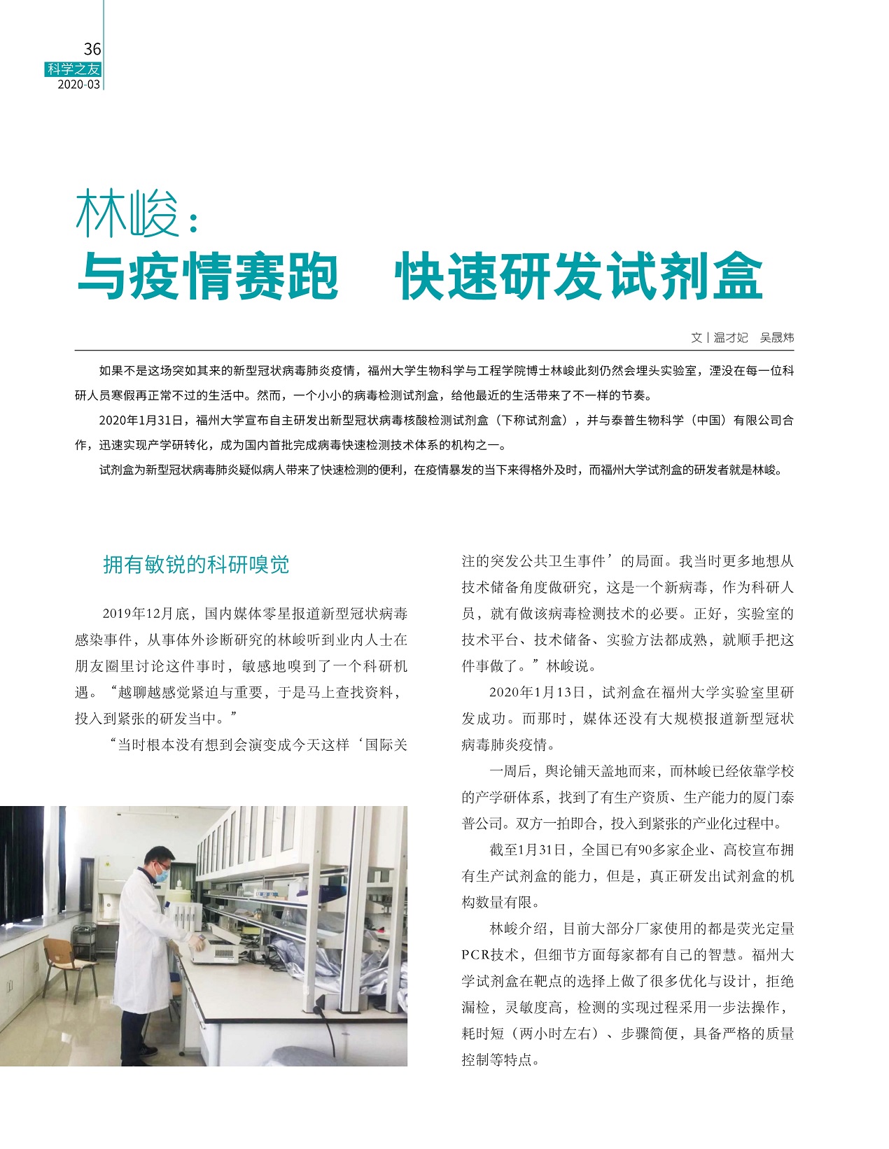 如果不是这场突如其来的新型冠状病毒肺炎疫情,福州大学生物科学与工程学院博士林峻此刻仍然会埋头实验室,湮没在每一位科研人员寒假再正常不过的生活中。