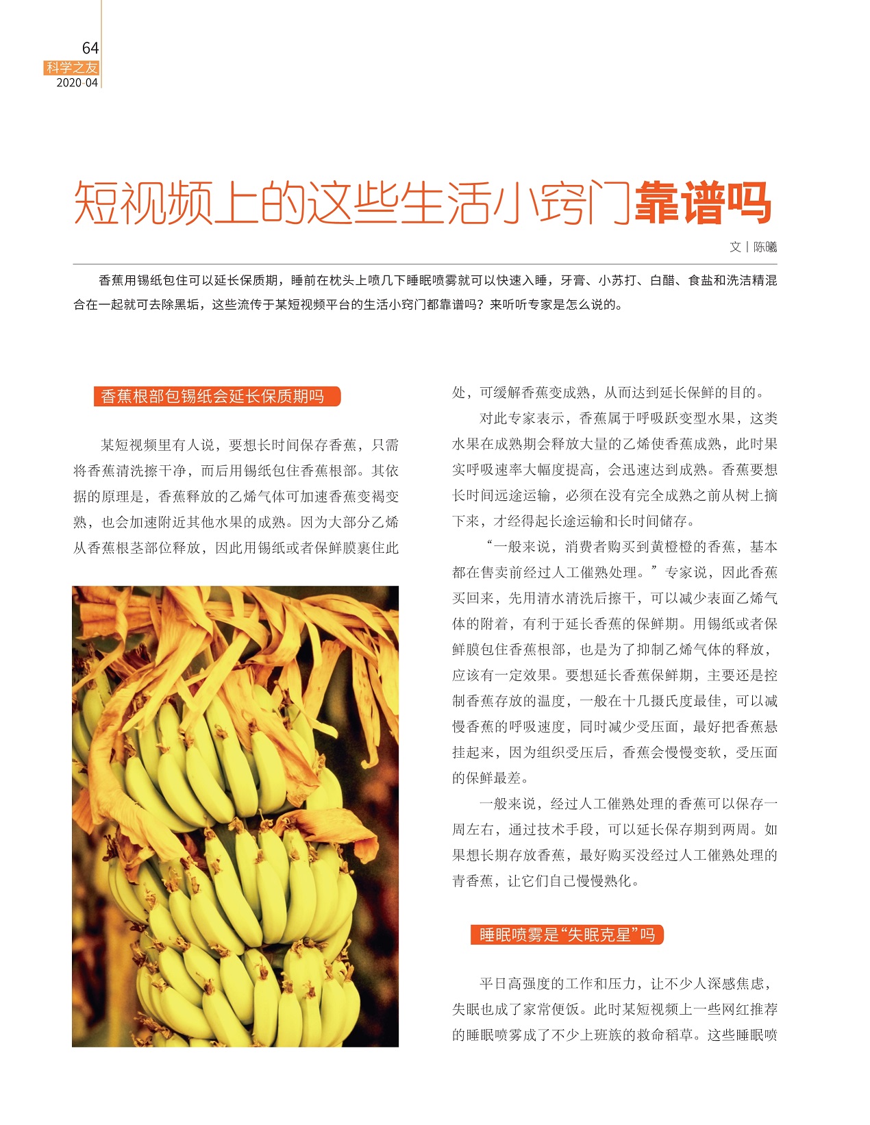 香蕉用锡纸包住可以延长保质期,睡前在枕头上喷几下睡眠喷雾就可以快速入睡。这些流传于某短视频平台的生活小窍门都靠谱吗?