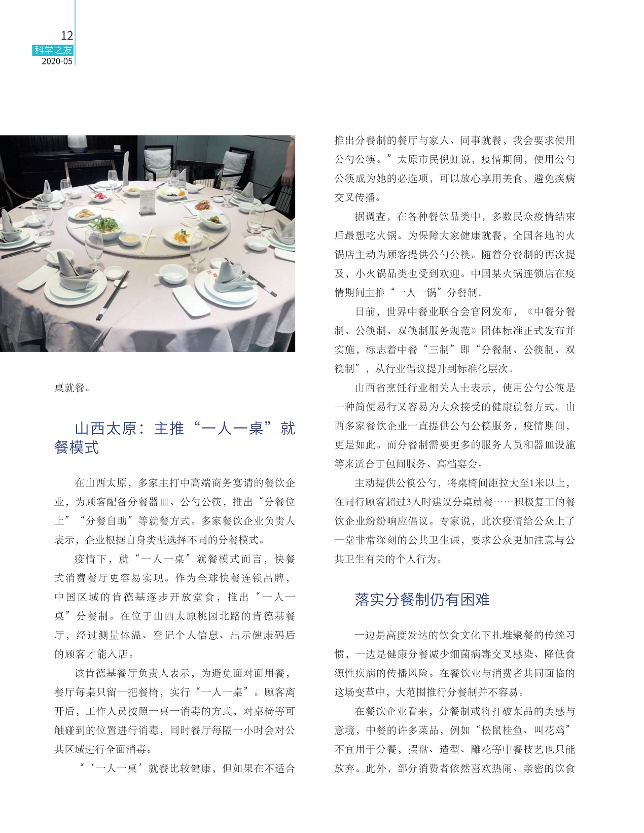 随着餐饮企业陆续恢复堂食营业,如何避免消费者在就餐的过程中发生交叉感染,成为不少餐厅的防控重点。