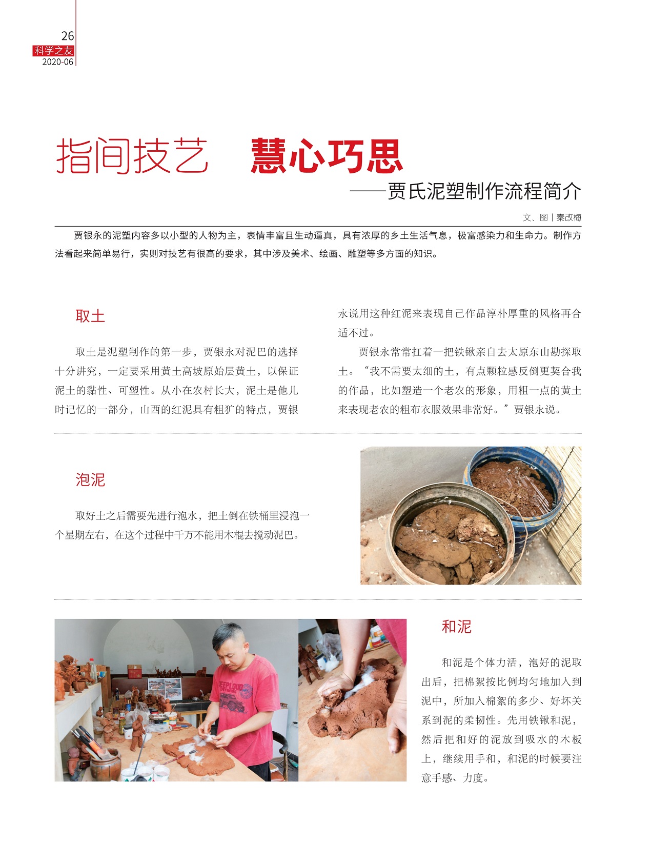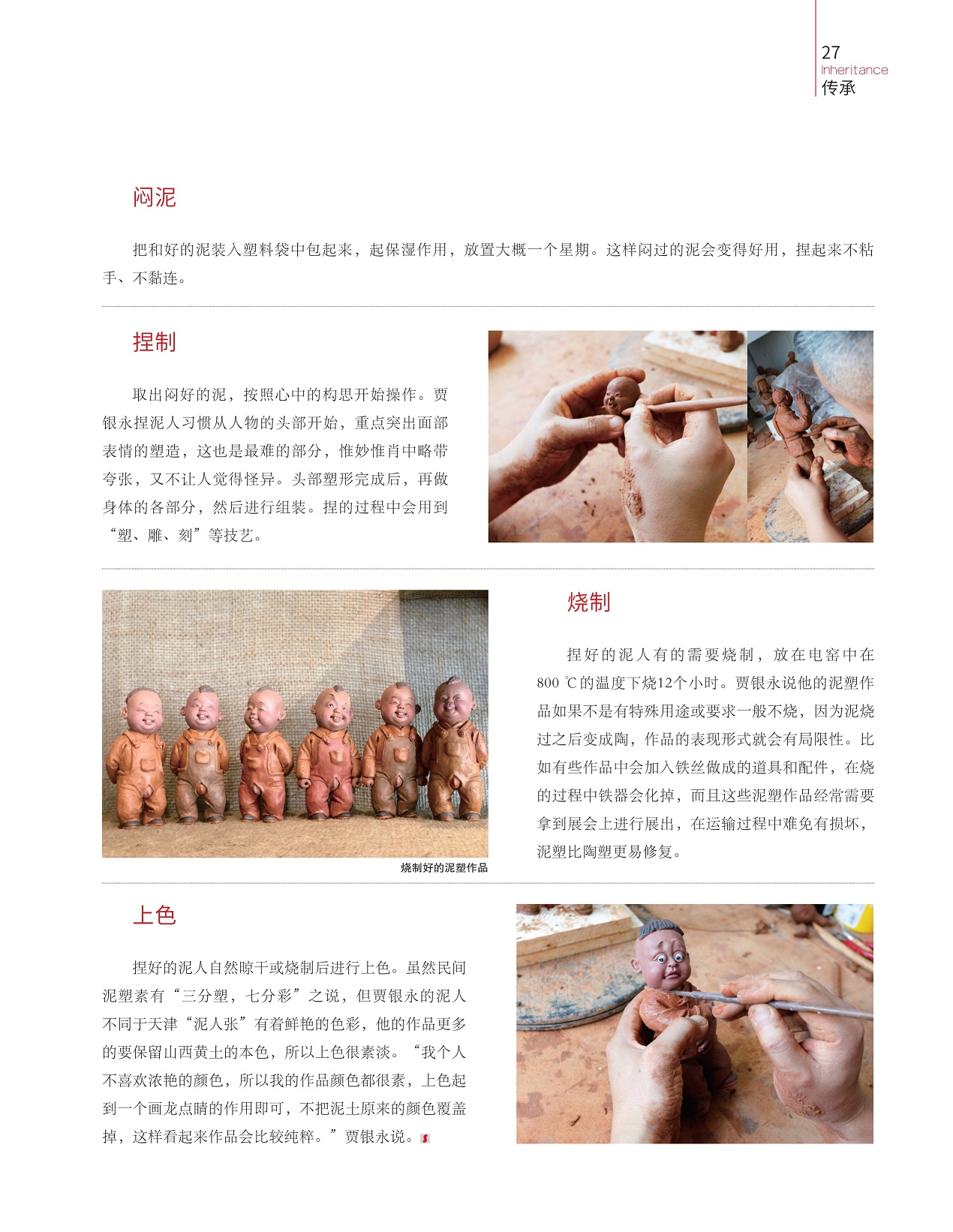 贾银永的泥塑内容多以小型的人物为主,表情丰富且生动逼真,具有浓厚的乡土生活气息,极富感染力和生命力。