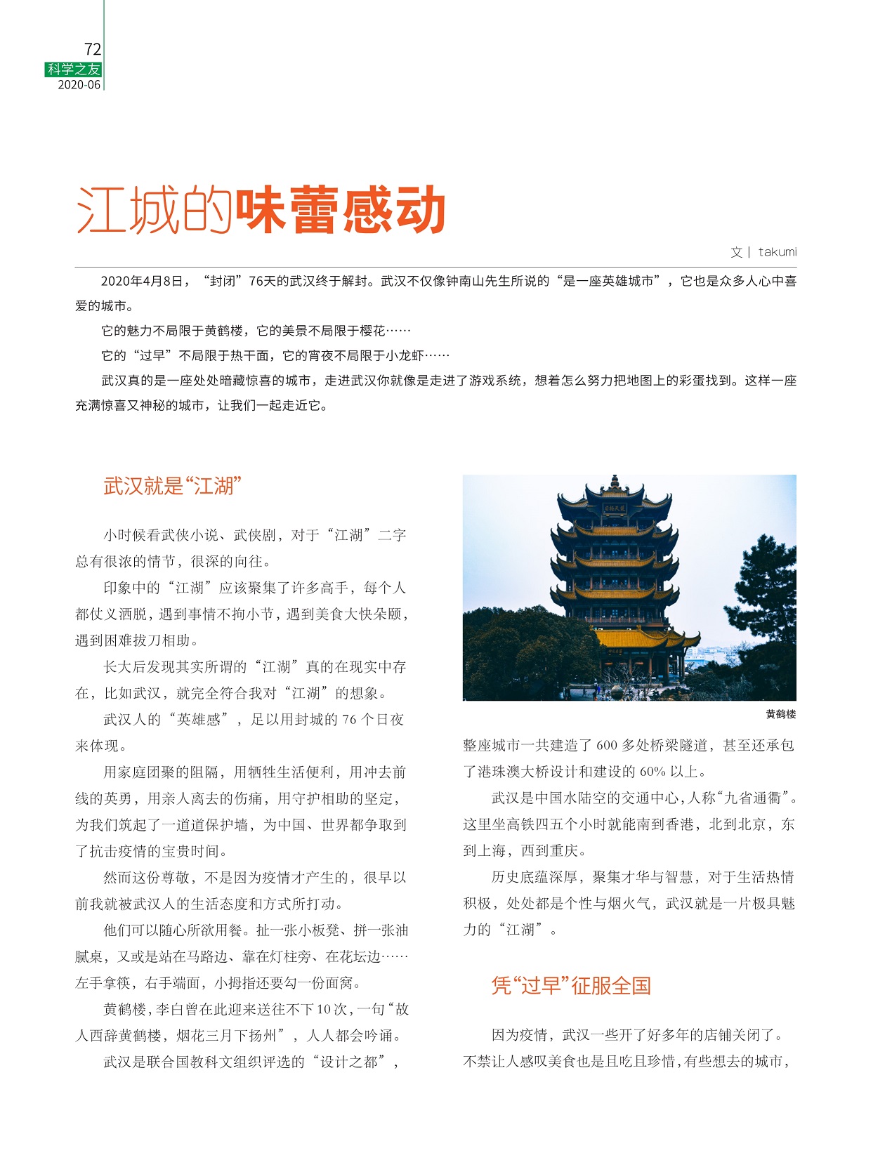 武汉不仅像钟南山先生所说的“是一座英雄城市”,它也是众多人心中喜爱的城市。它的魅力不局限于黄鹤楼,它的美景不局限于樱花。