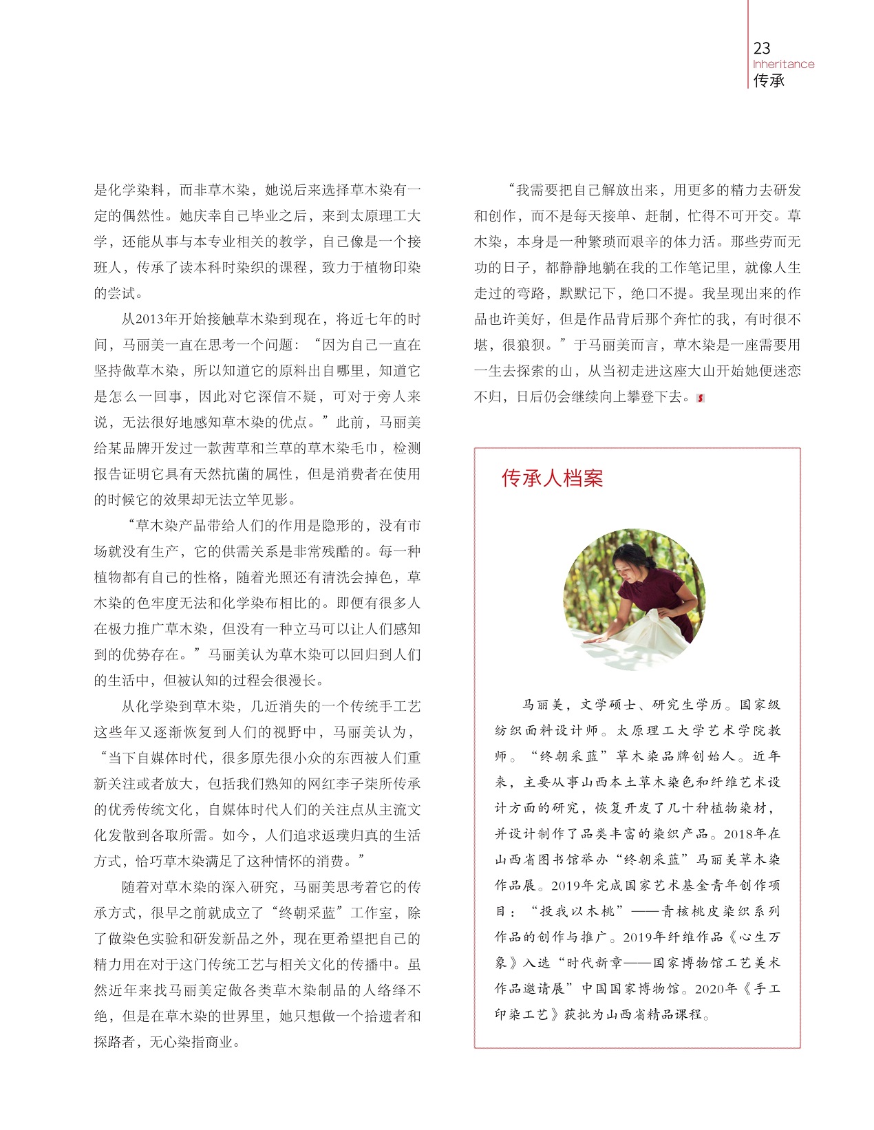 时隔马丽美“终朝采蓝”的个人展览一年多之后,我终于有机会到她位于山西省晋中市榆次区官道巷民俗文化小镇的工作室做了一次正式的采访。