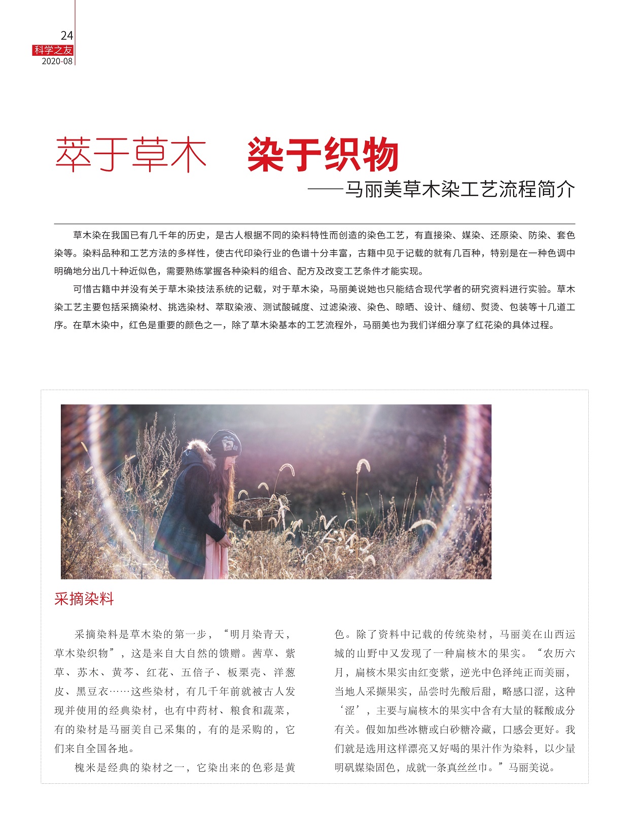 草木染在我国已有几千年的历史,是古人根据不同的染料特性而创造的染色工艺,有直接染、媒染、还原染、防染、套色染等。