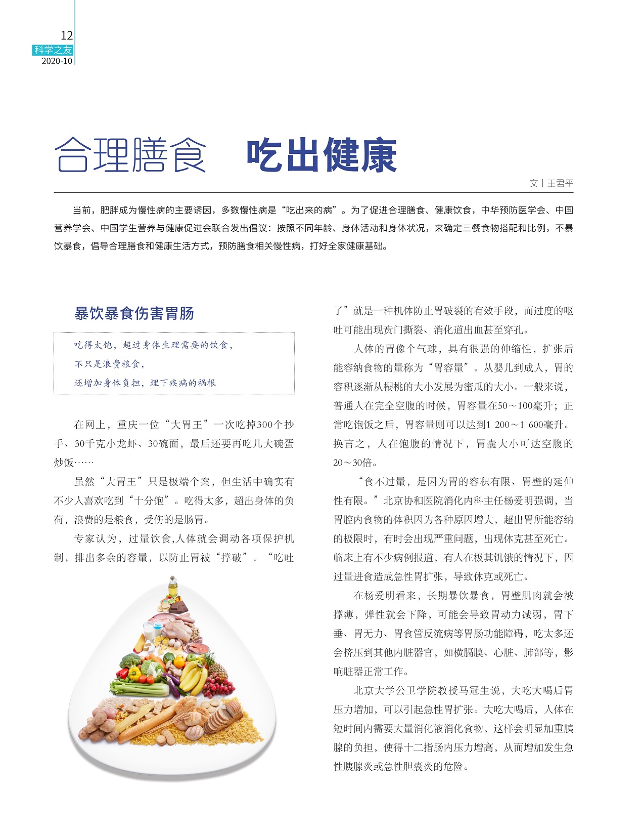 按照不同年龄、身体活动和身体状况,来确定三餐食物搭配和比例,不暴饮暴食,倡导合理膳食和健康生活方式,预防膳食相关慢性病,打好全家健康基础。