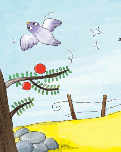 小蚂蚁狠狠地咬了猎人的手一口,猎人的枪口一歪,没有打中,小鸽子赶紧飞走了。