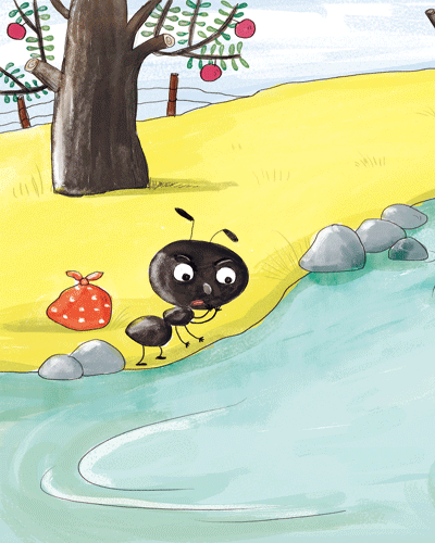 但小蚂蚁还是不小心掉进了河里,它高呼着:“Help! Help!”