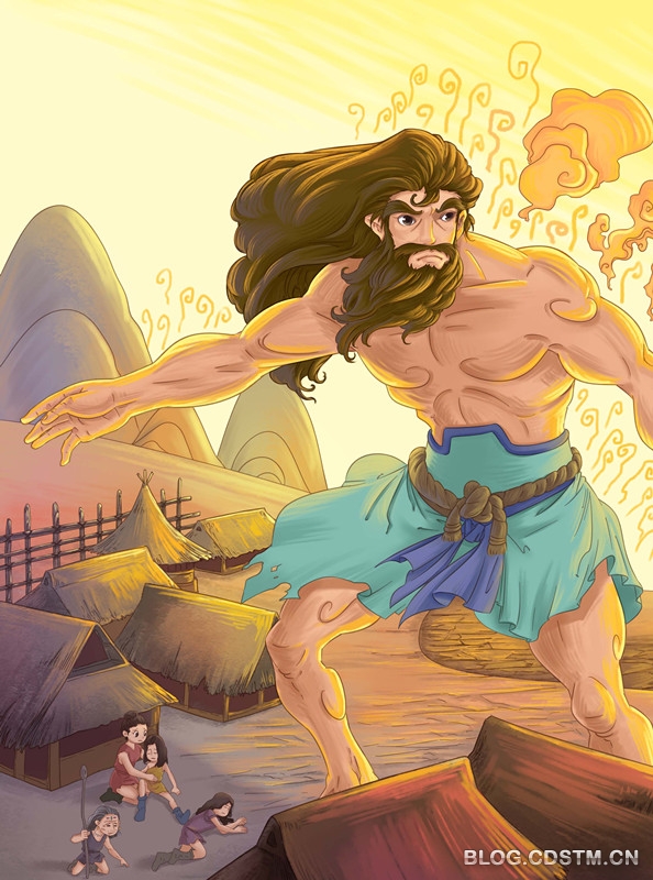 他又抱起一座大山,向太阳扔去,可是大山一点儿也没砸着太阳。