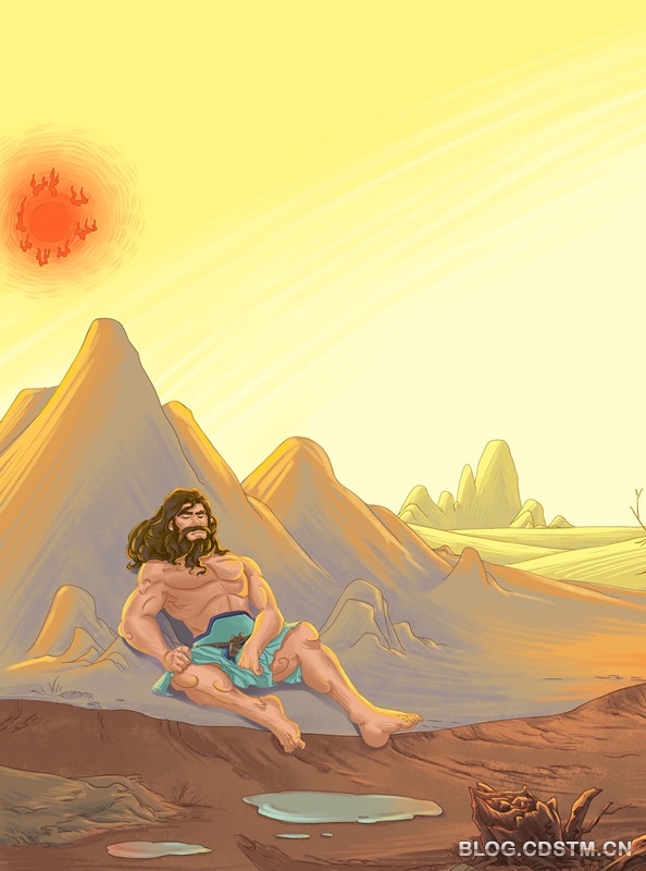 夸父不停地奔跑了三百六十五天,终于,来到了离太阳最近的地方。