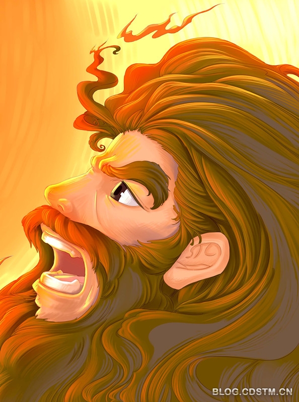 于是,他张开大嘴,想一口气吞下太阳,可他刚靠近太阳,头发就被烧着了。
