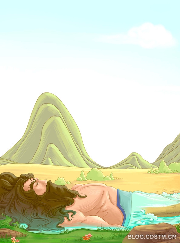 他再一次冲向了太阳,用最后一点儿力气把太阳摘了下来。突然,“轰”的一声巨响,夸父被太阳的热量击倒在地上,这一次,他再也没有起来,他的身体融化了,变成了一条大河。河水蒸发向上,顿时,倾盆大雨直泻而下,发烧的太阳终于开始降温了,空气又变得湿润起来,人们总算恢复了正常的生活。