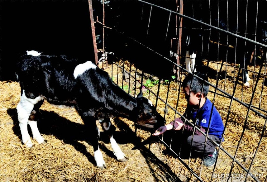 幼儿园的小朋友们虽然都是第一次见到奶牛,但是与奶牛宝宝们自然而然就建立了亲近感,走近奶牛宝宝,给他们喂食物。