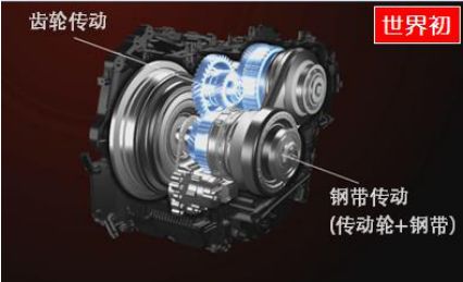 与其匹配的10速“双传动”CVT则进一步强化了上述特点,它的特别之处在于,采用了起步齿轮和高速钢带双传动的结构,巧妙地将AT与CVT变速箱的优势集于一身。