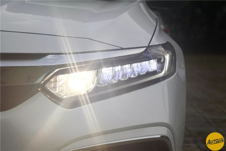 它的前脸已经不再采用大嘴风格,变得更加精致、小巧,搭配全LED羽翼式大灯,整个前脸看起来非常精神。它的前大灯也是我们比较熟悉的设计风格,细长的造型冲击力十足,内部结构也不复杂,由6组近光LED和3组远光LED光源构成。下方进气口比较凶悍,除了装饰作用以外还可以起到进气冷却刹车的作用。