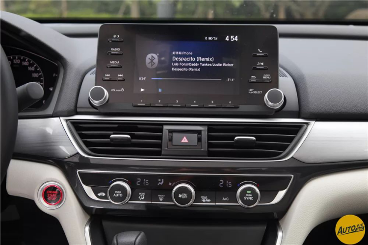 INSPIRE的内饰是我们非常熟悉的本田风格,主体深色调搭配木纹饰板装饰,简单明了,中控台上方覆盖材料的触感比较硬,好在门板内侧采用了皮革材质包裹,在一定程度上提升了舒适感和档次感。仪表盘读数简单明了,左侧的仪表可以模拟转速表,还以显示一些行车信息,功能比较丰富,而且操作很简便。在舒适、运动和标准三种不同的模式下,仪表盘的显示风格区别不大,只是在运动模式的时候会有两个红色的背光灯亮起。
