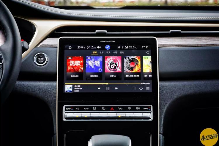 内部最大优点当属10.1英寸的中控大屏。车机系统作为以稳定性为最大前提的电子设备,相对我们日常使用的消费电子产品会有更长的开发周期,往往在一款车面试式其实就已经有些落后了,也很难做的轻薄美观。但GS5 的这块中控屏却通过很巧妙的方式,在表面留出了一个薄薄的边框之后,将主体隐藏在了后面的饰板中。再配合上显示效果细腻,运行流畅的软件 UI,就算当作一块平板电脑卖也能算是主流产品了。