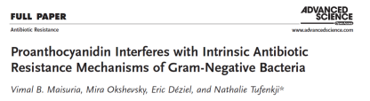 “我们在受感染的昆虫模型中又进行了测试。结果显示,原花青素和抗生素的协同作用在昆虫中可以观察到”。研究通讯作者、麦吉尔大学化学工程教授Nathalie Tufenkji说。