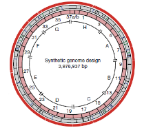 研究人员将人工合成61种新型密码子的DNA植入至大肠杆菌中。历经两年的时间,该团队以人工合成的61组密码子完全取代原有的64组密码子,得出新生物大肠杆菌Syn61。Syn61生长速度较一般大肠杆菌慢,形状较长,但仍能存活。这项研究是迄今为止全球最庞大的DNA编码替换研究,实现了合成生物学合成完整的人类基因组的梦想。